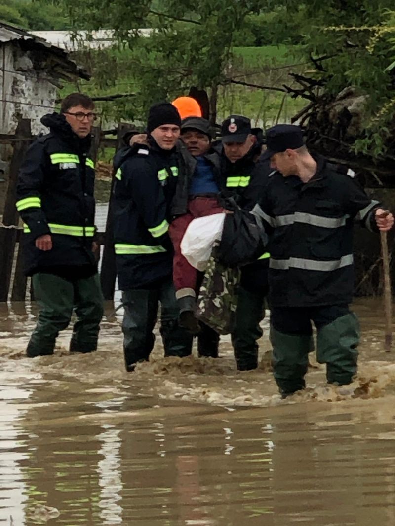 Imagini cumplite au fost surprinse in ultimele 24 de ore in cateva localitati din Vaslui. Un batran din localitatea Todiresti este scos din locuinta inundata si dus pe brate, de salvatori, catre un loc sigur.