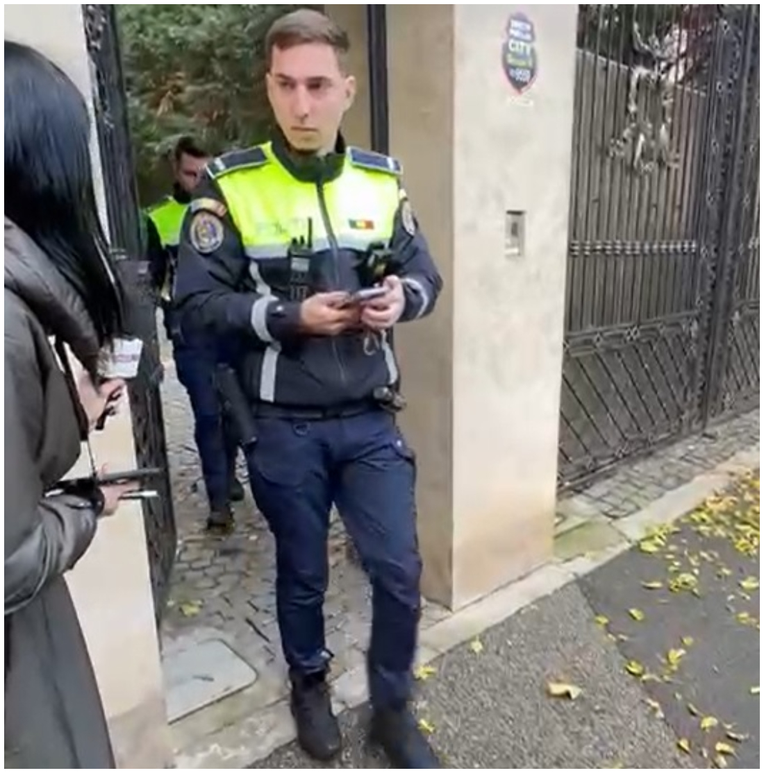 "Puteți să filmați aici pe stradă, oricunde doriți, dar nu și în curtea proprietarului, nu peste gard, nu printre grilaje", a spus unul dintre polițiști.