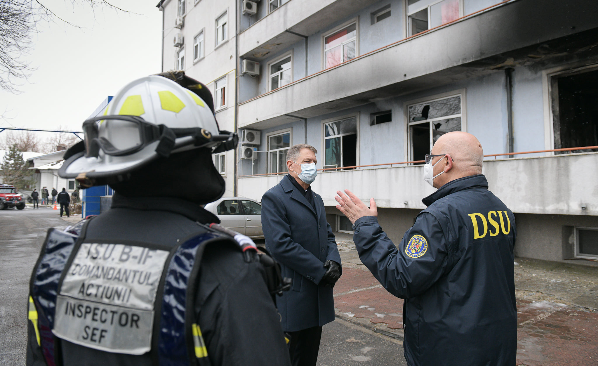 Preşedintele Klaus Iohannis a mers vineri la Institutul ”Matei Balş”, unde cinci persoane au murit în urma unui incendiu izbucnit vineri dimineaţă în saloane în care erau internaţi pacienţi cu COVID-19.