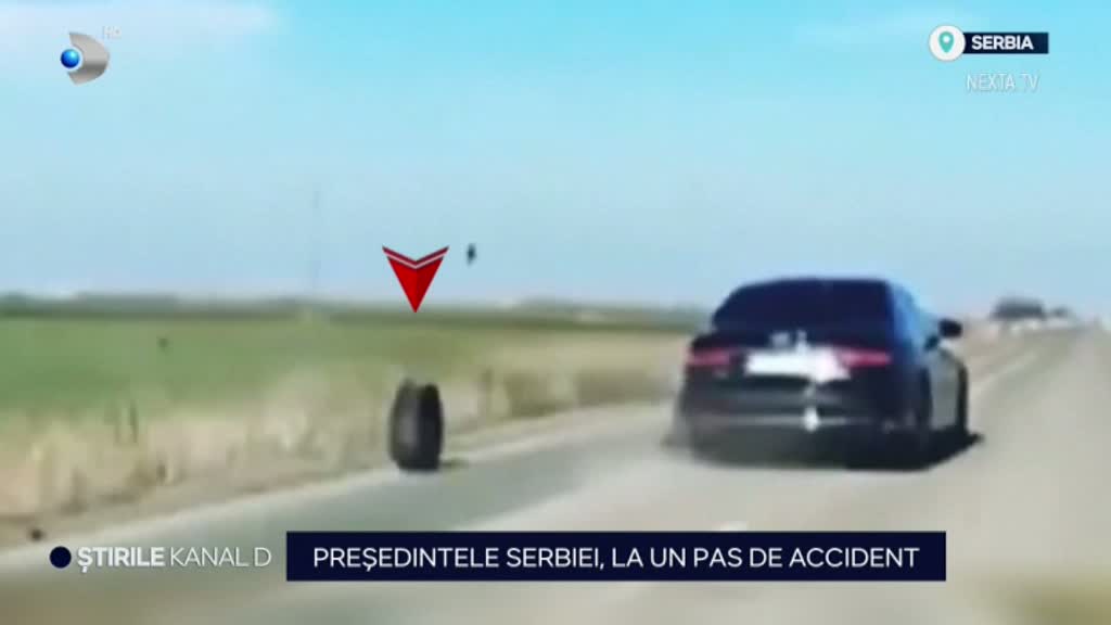 În imaginile surprinse pe camera de bord se vede cum roata de la mașină se desprinde, pur și simplu, în mers. În ciuda vitezei, șoferul președintelui reușește să redreseze mașina și să evite o tragedie. Totul s-a întâmplat în localitatea Mokrin. Acum, experții trebuie să stabilească din ce motiv a explodat cauciucul”.