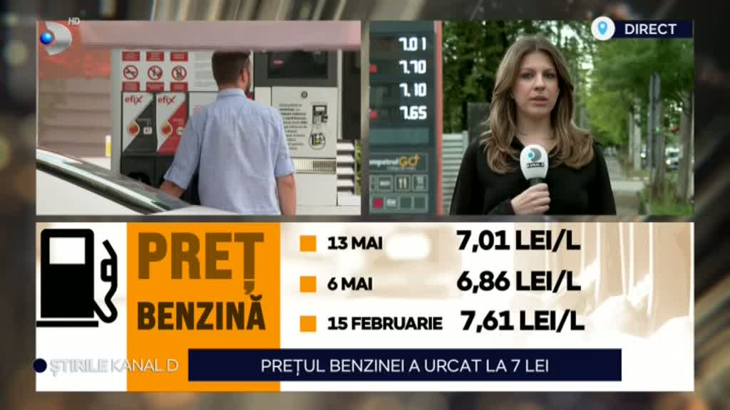 La unele stații, benzina a depășit deja pragul de 7 lei. Benzina s-a scumpit ușor, acum este undeva în jurul valorii de 7 lei, în timp ce săptămâna trecută costa 6 lei și 86 de bani, ceea ce la un plin înseamnă o scumpire de 7 lei într-o singură săptămână, dar în continuare benzina este mult mai ieftină decât era la începutul anului. Pe 15 februarie benzina costa 7 lei și 61 de bani.