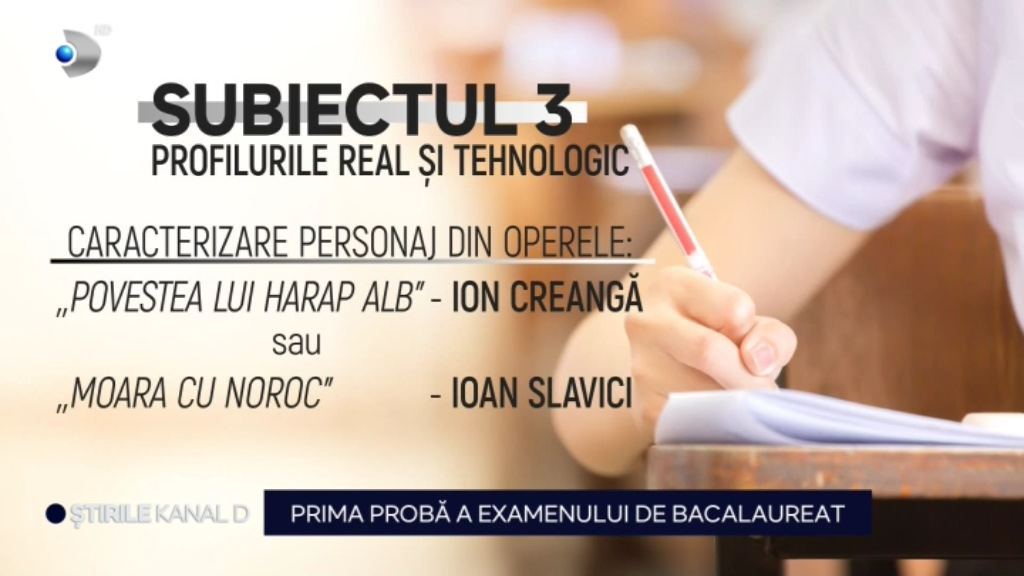 Absolvenții de la profilurile Real și Tehnologic au avut la subiectul 3 de caracterizat un personaj din operele Povestea lui Harap Alb” scrisă de Ion Creangă sau „Moara cu noroc„ scrisă de Ioan Slavici. Iar cei de la profilurile Uman și Pedagogic au avut de analizat relația dintre două personaje din aceleași opere.