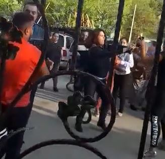 Scandalul a continuat, iar de aceasta data colegul politistului era cat pe ce sa fie lovit de o femeie.