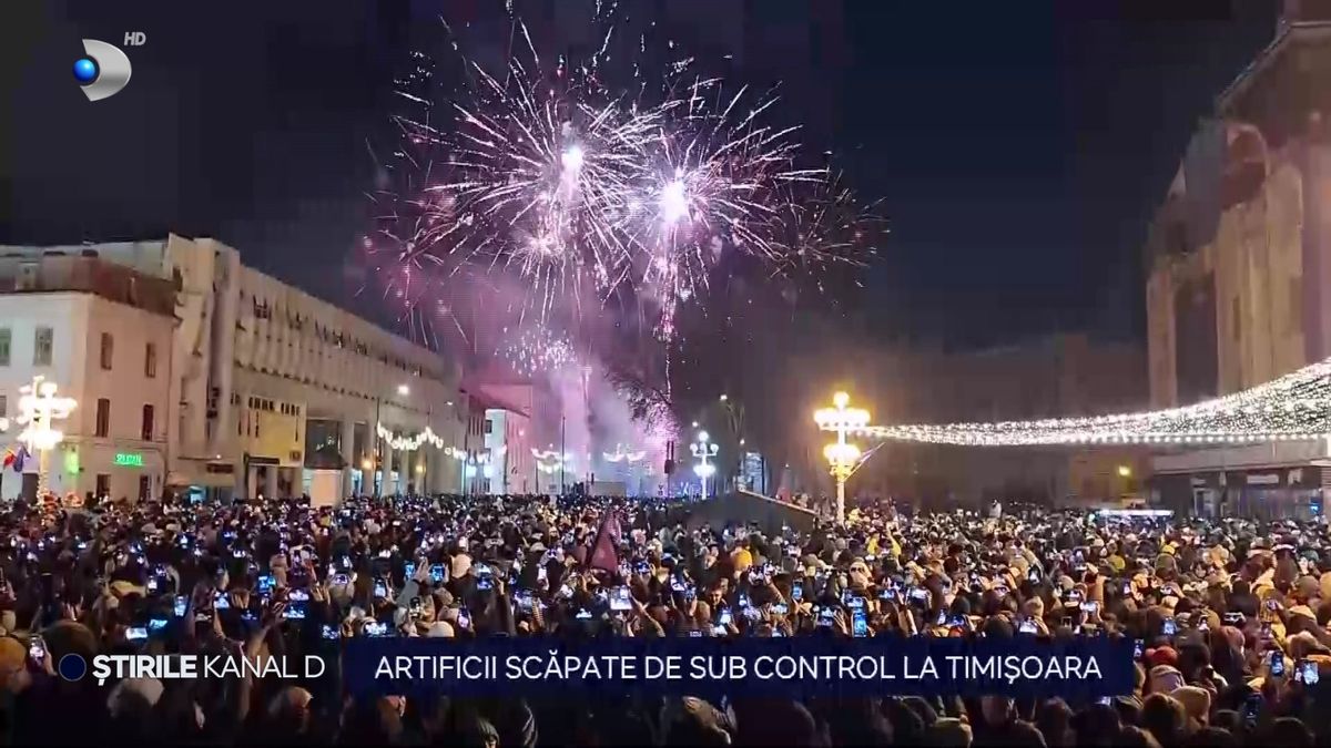 În Piața Victoriei din Timișoara, în timp ce mii de oameni admirau focul de artificii și se bucurau de spectacolul oferit de trupa Lupilui Calancea, câteva artificii au explodat la o înălțime mult prea joasă, în apropierea mulțimii. Din fericire, nu au fost raportate victime, însă momentul a creat panică, iar oamenii au fugit speriați pentru a se feri de eventuale răni. După acest incident, petrecerea a continuat, iar atmosfera s-a menținut festivă.