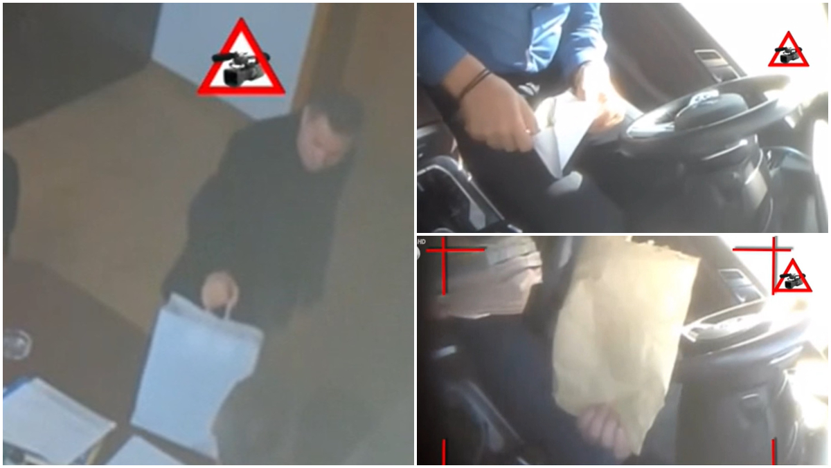 Imaginile înregistrate de un investigator sub acoperire arată cum erau plimbați banii între personajele-cheie ale acestui dosar. Sunt imagini care ar trebui să dovedească șpăgi totale de peste șase milioane de euro, spun procurorii DNA.