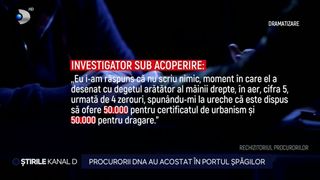 Investigatorul sub acoperire descrie una dintre situații. "Eu i-am răspuns că nu scriu nimic, moment în care el a desenat cu degetul arătător al mâinii drepte în aer cifra cinci urmată de patru zerouri, spunându-mi la ureche că este dispus să ofere 50 de mii pentru certificatul