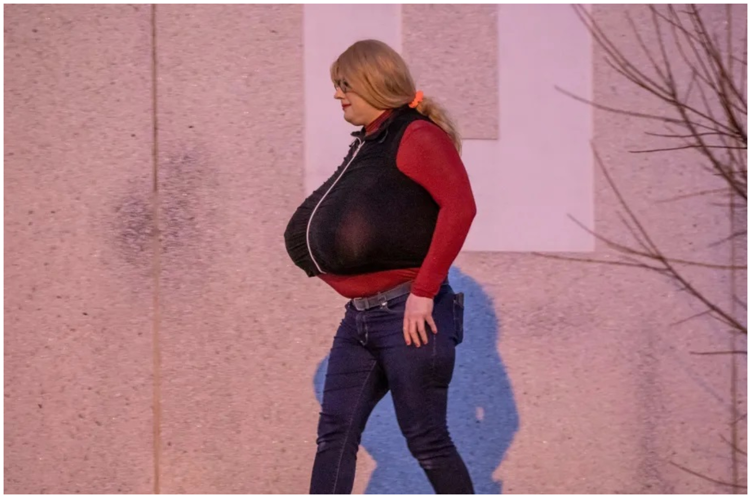 Femeia se apără și spune că sunt sânii ei naturali, nu unii artificiali, și nu are ce face împotriva dereglării hormonale prin care trece.