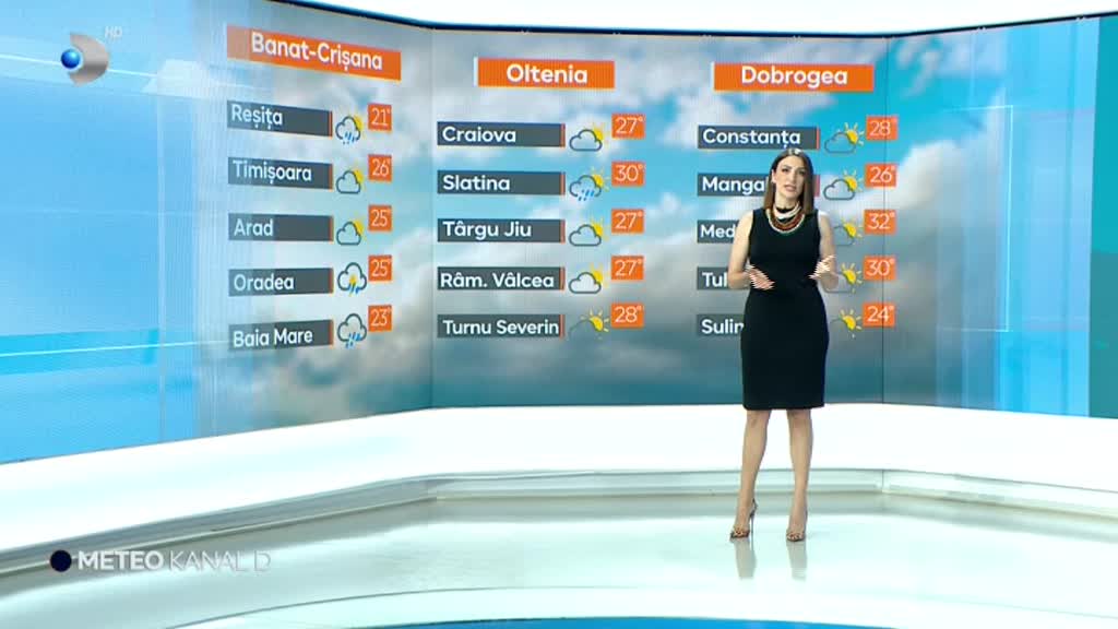 În Oltenia, va fi destul de cald, cu ploi doar pe alocuri, iar temperaturile vor oscila între 27 de grade în Târgu Jiu și 30 de grade în Slatina.În Dobrogea, cerul va fi variabil, cu un vânt slab, iar temperaturile vor urca până la 32 de grade în Medgidia și 26 de grade în Mangalia. În Capitală, săptămâna a început cu vreme deosebit de caldă și însorită, cu ploi ușoare spre seară, maxima atingând 30 de grade.