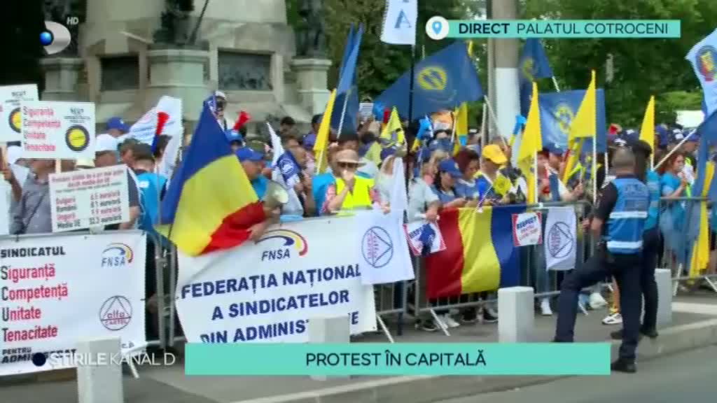 Sute de angajați au ieșit să protesteze în fața Palatului Cotroceni. Aceștia sunt nemulțumiți de faptul că nu au fost chemați și ei la consultările pentru reducerea deficitului bugetar.
