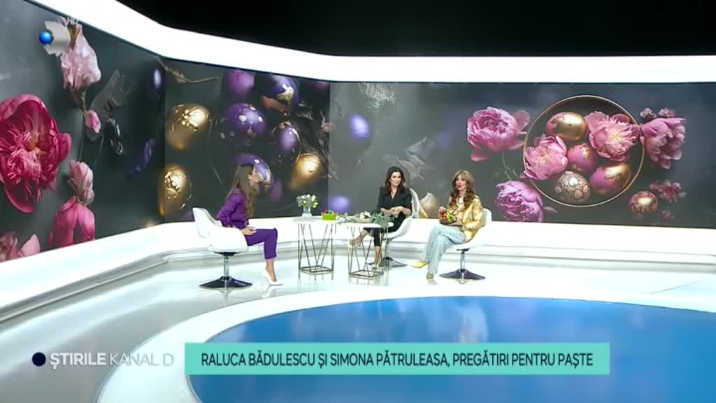 Raluca Bădulescu și Simona Pătruleasa sunt două dintre cele mai apreciate vedete de la noi din țară. Sunt femei de succes și mai mult decât atât, gospodine desăvârșite! Iar astăzi, în Joia Mare, au venit în platoul știrilor Kanal D pentru a ne povesti despre pregătirile pe care le fac, dar și despre cum vor petrece Paștele în acest an.