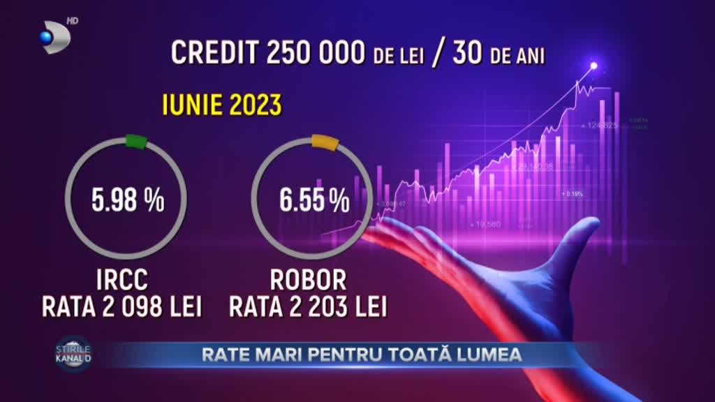 Concret, ratele celor care au credite vor ajunge spre același nivel, indiferent de cum se calculează dobânda. Degeaba au sperat oamenii că pot răsufla ușurați. Pentru un credit de 250 de mii de lei, pe o perioadă de 30 de ani, în iunie rata în funcție de IRCC era de aproape 2100 de lei, iar in functie de robor de 2200 de lei.