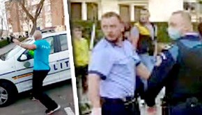 Zeci de locuitori au coborât din apartamente ca să îi ia apărarea celui legitimat de poliţie, iar alţii s-au alăturat ca martori la un adevărat război de cartier.