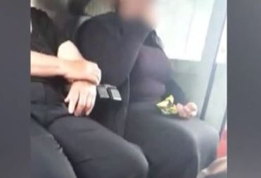 Desi compartimentul este plin, femeia din imagini se comporta ca si cum ar fi singura, la ea acasa, și mananca seminte.