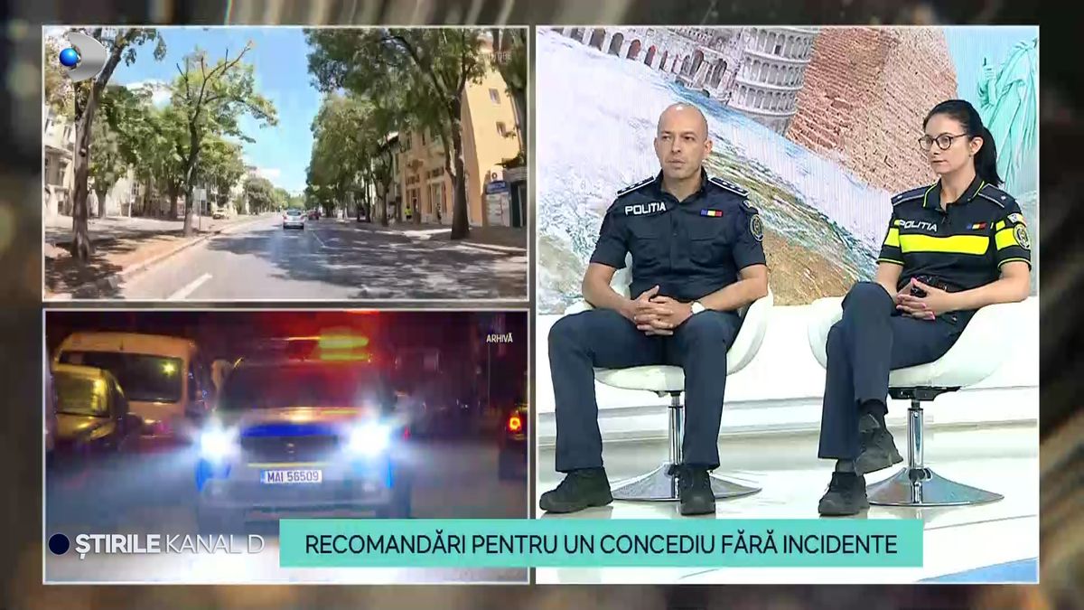 „Dacă vă gândiți la o vacanță cu mașina, prin Europa, trebuie să țineți cont de câteva aspecte importante. La ce trebuie să fiți atenți și cum anume să vă pregătiți pentru un astfel de concediu, aflăm chiar acum de la autoritățile abilitate. În platou se află domnul Alexandru Popa, comisar-șef IGPR și Andra Arsintescu, subcomisar Brigada Rutieră”.