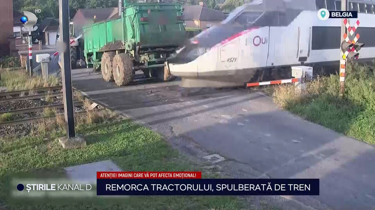 „Un tren de mare viteză din Belgia a intrat în coliziune cu remorca unui tractor. Impactul a fost surprins de camerele de supraveghere.