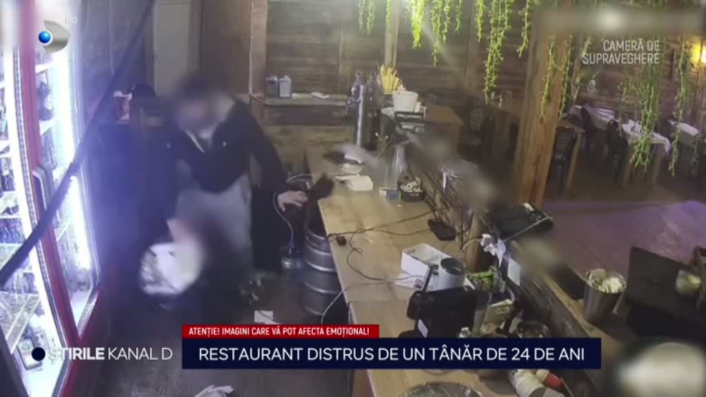 Conform martorilor și imaginilor surprinse la fața locului, individul a intrat în local și a făcut prăpăd, distrugând mobilierul și alte bunuri din interior.