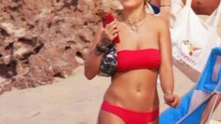 Rita Ora si-a impresionat fanii in cea mai recenta aparitie a ei, pe o plaja din Caraibe. Aflata într-o vacanță exotică, actrita britanica a aparut fara pic de machiaj și într-un costum de baie alb cu o croiala retro, accesorizat cu ochelari de soare și o brățară de aur.