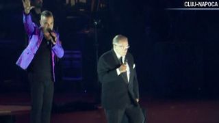 La un moment dat, superstarul britanic si-a invitat tatal pe scena pentru a canta impreuna, asa cum a facut si la alte concerte sustinute in alte tari.