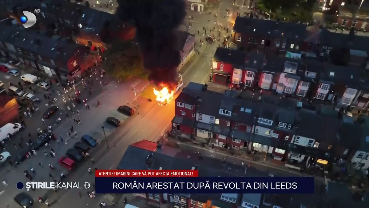„A fost arestat primul român după răscoala din Leeds. Bărbatul este acuzat că a incendiat un autobuz și, mai mult decât atât, se pare că individul a fost și filmat în timp ce comitea gestul nebunesc. Atenție, urmează imagini și informații care vă pot afecta emoțional”, a spus Silvia Ioniță.