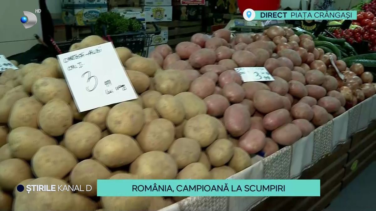 „România este campioană în Europa! Campioana la scumpiri, căci în piețele și centrele comerciale, costurile produselor parcă au explodat. Asta se întâmplă deși nivelul inflației este într-o ușoară scădere față de luna decembrie a anului trecut. Cât de mult au crescut costurile în ultima perioadă și ce reacții stârnesc în rândul clienților, știe colega mea, Georgiana Grimm”.