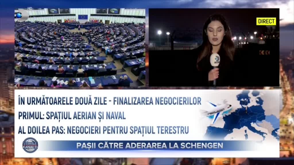 „Bună seara, autoritățile speră să finalizeze în următoarele două zile negocierile pentru aderarea la Spaţiul Schengen. Va fi o aderare în mai multe etape, un prim pas prevede spațiul aerian și naval, potrivit unor informații, în martie. Pentru al doilea pas, ar urma ca anul viitor să se termine negocierile pentru aderarea pe terestru. Deși Austria pare că s-a răzgândit, totul vine cu un cost. Concret, lista condițiilor impuse prevede o triplare a numărului de polițiști de frontieră. Totodată, controale întărite la frontierele terestre, precum și preluarea de către România și Bulgaria a solicitanților de azil, în special afgani și sirieni. Deși premierul a anunțat deja o victorie în acest sens, mă refer aici la intrarea în Schengen prin spațiul aerian, președintele Iohannis nu pare la fel de convins. Klaus Iohannis susține că mai este mult de negociat până când Austria va avea o poziție favorabilă, dar șeful statului nu a exclus un consiliu extraordinar JAI până la finalul anului”, a transmis Diana Buzea, reporterul Știrilor Kanal D.