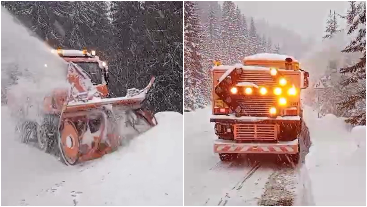 Pe mai multe drumuri din țară, autoritățile au intervenit de la primele ore cu mai multe utilaje de deszăpezire. La Vidra, Voineasa, autoritățile se luptă cu zăpada viscolită, care a făcut troiene pe marginea drumului.