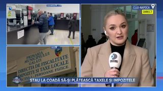 „Mulți români vor să înceapă anul cu taxele și impozitele plătite. Așa că azi, de cum s-au deschis ghișeele, au și mers să-și achite dările. Un exemplu vine de la Cluj- Napoca și Galați. Colega mea, Silvia Cseh, ni se alătură cu detalii. Bună ziua, Silvia”, a transmis Cristina Dorobanțu, prezentatoarea Știrilor Kanal D.