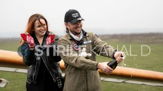 14 din 19 | Victoraș Anghel și soția sa, Ioana Satmari, deschid șampania după finalizarea cu succes a zborului de test