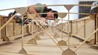 Ce nu se vede însă în imagini este rutina. Zile întregi în care nimic nu „se întâmplă”, în afară de avansul câtorva centimetri de lipire sau de ajustarea unei nervuri. Nopți în care calculele trebuie refăcute până când cifrele coincid perfect cu realitatea din atelier. Și inevitabilele momente în care ceva nu iese, trebuie refăcut, uneori de mai multe ori.