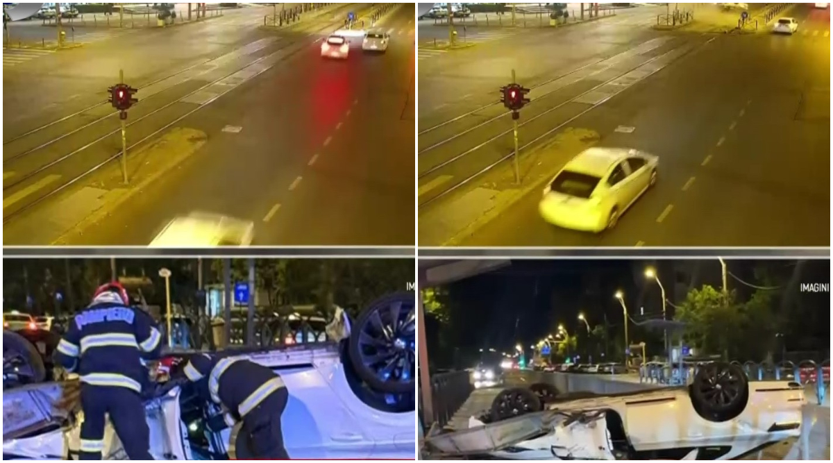 Un accident șocant a avut loc noaptea trecută pe o stradă din Sector 5 al Bucureștiului, unde un tânăr șofer de 20 de ani a pierdut controlul volanului și s-a răsturnat cu mașina pe șinele de tramvai, după ce a intrat cu viteză mare într-un refugiu de tramvai.