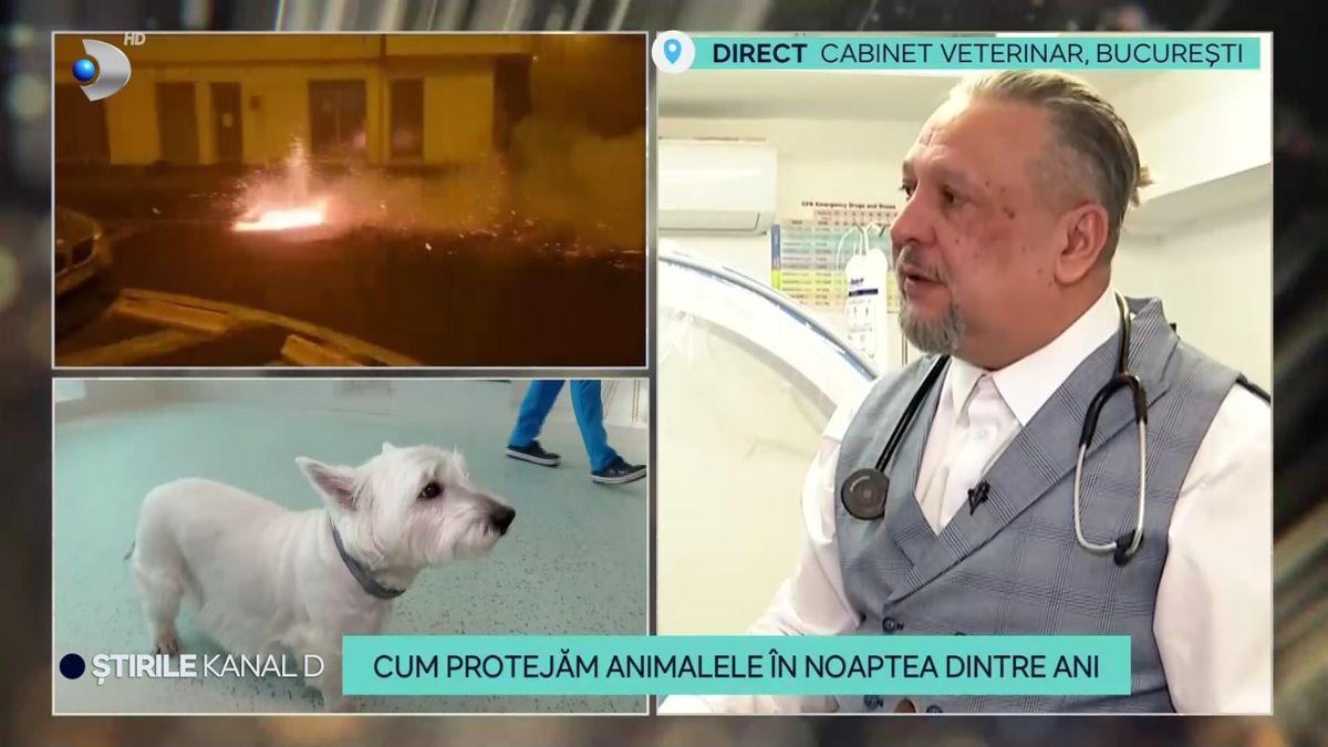 Medicul veterinar Florin Leca recomandă ca, pe 31 decembrie, în timpul artificiilor, să nu scoatem câinii afară. Este indicat să modificăm ora obișnuită a plimbării, astfel încât animalul să nu fie expus zgomotelor puternice.