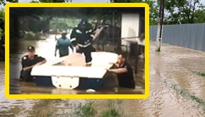Dupa un nou episod violent de ploaie torentiala, satul Cusuiuș, din județul Bihor a fost scufundat in ape. Oamenii au crezut ca vine apocalipsa cand au vazut- pe strada principala- cum viitura se revarsa. Un biet batran, speriat de puterea apei, a fost scos din casa de un pompier.