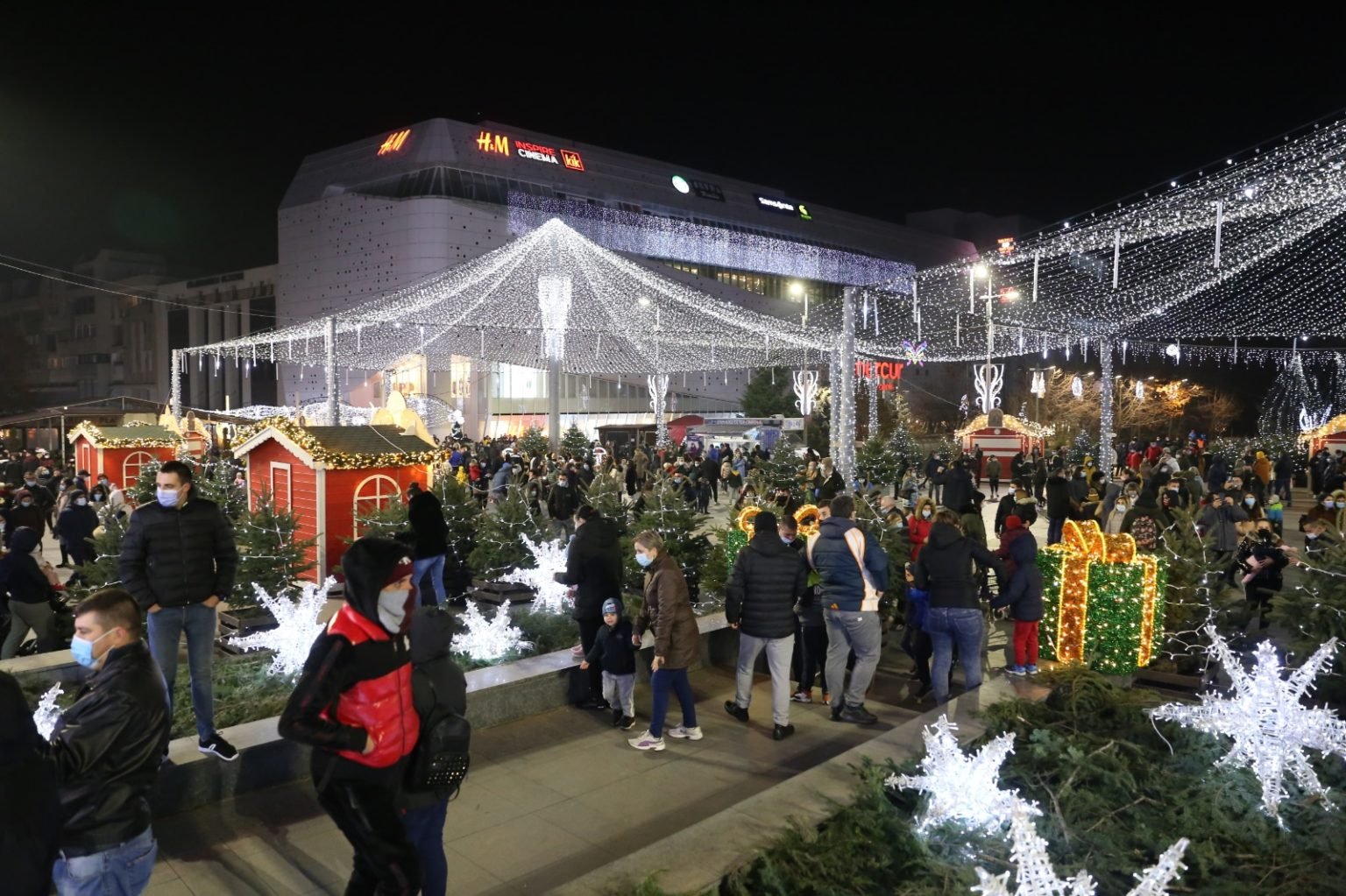 Aşa arăta târgul de Crăciun aseară, când s-au aprins luminiţele de sărbători. Dar bucuria celor prezenţi a durat puţin. Totul a luat o întorsătură neaşteptată după ce autorităţile locale au decis că tradiţia sezonului de iarnă se va ţine şi anul acesta în Bănie, în ciuda restricţiilor.