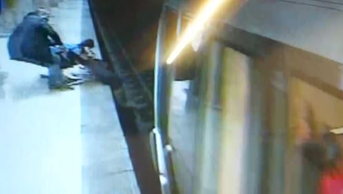 Fata este trasă de pe șine exact în ultima clipă înainte de a fi lovită de metrou.
