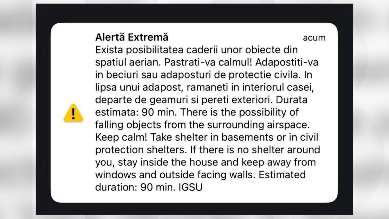 În România, Inspectoratul General pentru Situații de Urgență a emis un mesaj prin sistemul RO-ALERT, prin care a informat populația din județul Tulcea cu privire la posibilitatea căderii unor obiecte din spațiul aerian tranzitat de drone.