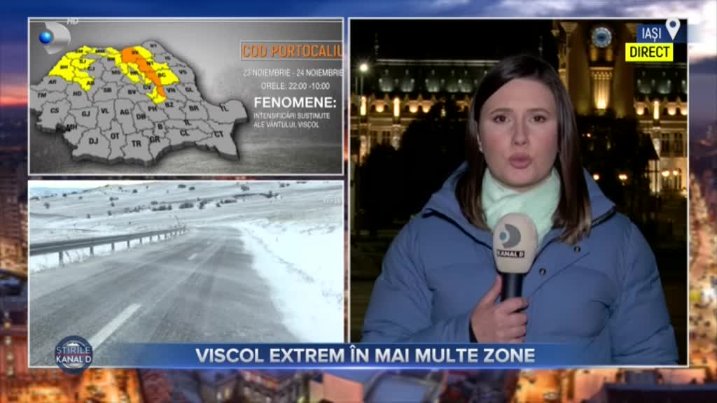 „Ce știm sigur este că astăzi și mâine vom avea parte de viscol și ninsori în unele zone ale țării. Meteorologii au emis deja un cod galben și altul portocaliu. Colega mea Delia Săndulachi are datele exacte”, a transmis Silvia Ioniță, prezentatoarea Știrilor Kanal D.
