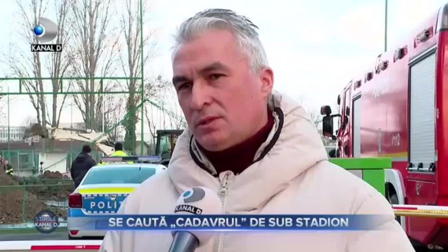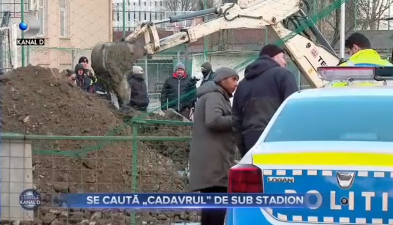 "Peste 30 de polițiști au venit la stadion. Au fost aduse două excavatoare, o mașină de pompieri și mai multe dube de poliție în care se afla echipament pentru săpături", explică reporterul KanalD Claudia Costandiș.