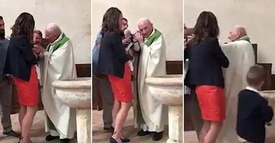 Scene socante au fost surprinse intr-o biserica din Franta in timplul slujbei de crestinare. In momentul in care preotul ia in brate bebelusul acesta incepe sa planga. Pret de cateva secunde, preotul incearca sa il calmeze si, pentru ca isi pierde rabdarea, incepe sa il loveasca si sa il smuceasca sub privirile impietrite ale parintilor.