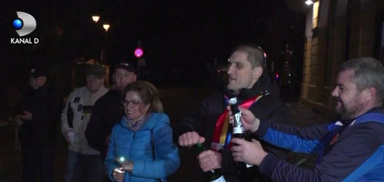 Alegeri prezidențiale 2019. Zeci de sibieni au sarbatorit victoria in alegeri a lui Klaus Iohannis in fata sediului PSD din oras.