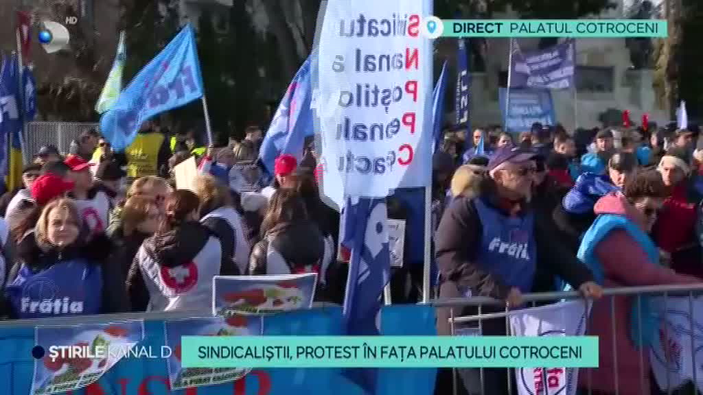 În prag de Crăciun, peste o mie de sindicaliști s-au adunat în fața Palatului Cotroceni pentru a-și exprima nemulțumirile legate de salariile mici și condițiile dificile de muncă. Protestul, organizat de mai multe confederații sindicale importante din România, printre care cartel ALVA și Confederația Sindicală Națională Meridian, a avut loc în Piața Leu și a fost autorizat între orele 11 și 13.