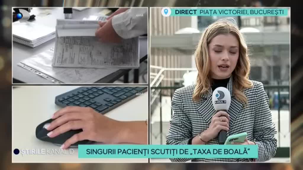 "Taxa pe boală" ar putea fi eliminată. Însă nu pentru toate categoriile de pacienți. Cei ce vor fi scutiți de suprataxa pentru concediile medicale sunt viitoarele mămici și bolnavii de cancer. Ministrul de Finanțe a selectat mai multe categorii sociale de persoane, ce vor fi exceptate, în curând, de la supraimpozitarea de 10 la suta din venit, introdusă prin lege la începutul acestui an. Ce înseamnă asta, de fapt, ne explica colega mea, Andra Ionescu, a transmis Cristina Dorobanțu.