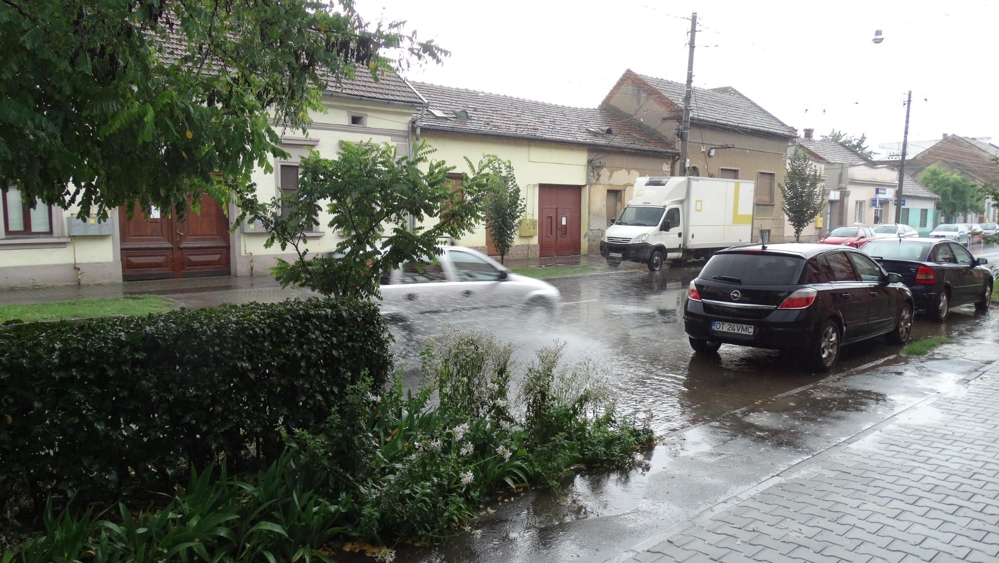 Și acest domn abia a izbutit să treacă strada. Trecerea de pietoni era inundată, așa că bătrânul a încercat să facă un ocol. Până a reușit să traverseze- semaforul s-a făcut roșu.