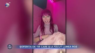 "O șoferită de tir face furori pe șosele și nu trece neobservată niciodată, indiferent în ce țară s-ar afla. Asta pentru că și-a personalizat cabina camionului în culoarea ei preferată, rozul. Chiar și pisicile pe care le duce cu ea peste tot sunt în trendul „Barbie”. Femeia ne-a povestit despre pasiunea ei care e văzută ca fiind bizară pentru o femeie", a transmis Simona Pătruleasa.