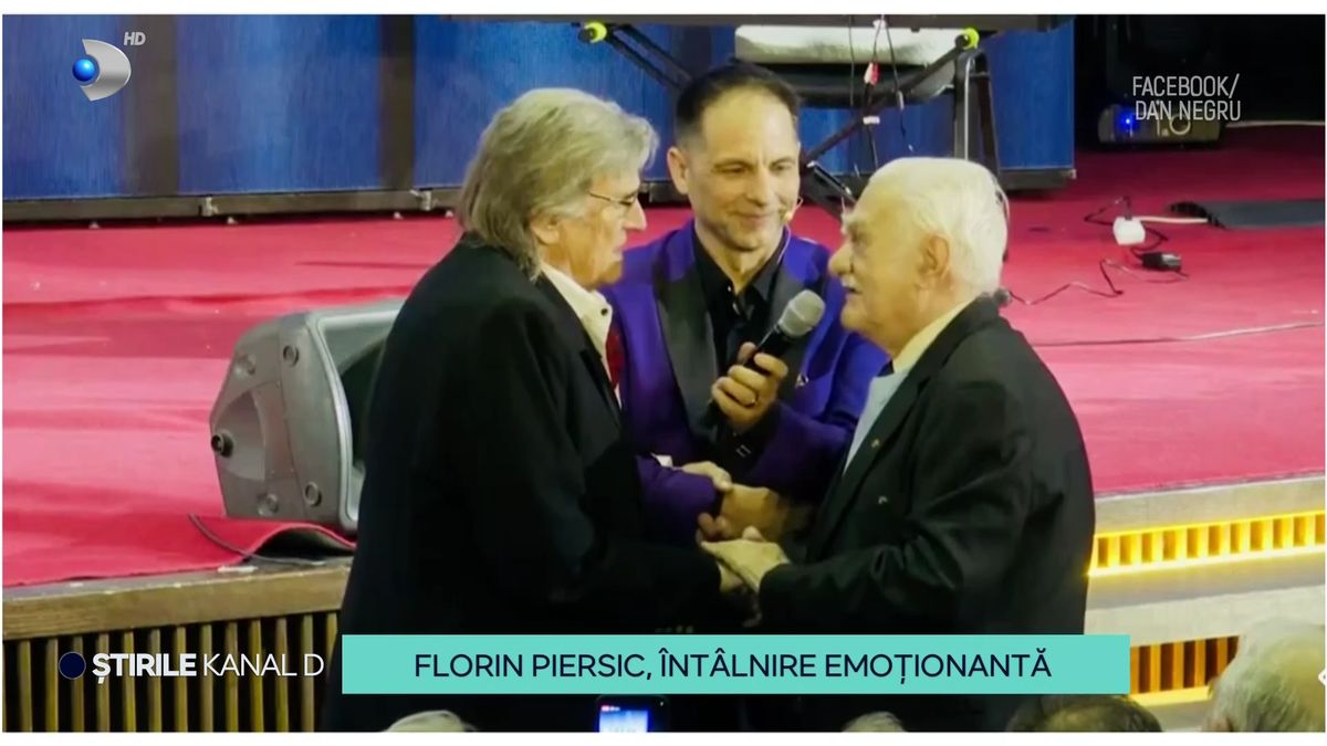„Momente emoționante pentru marele actor Florin Piersic. Maestrul s-a reîntâlnit cu unul dintre colegii săi de liceu, alături de care a depănat amintiri. Totul s-a petrecut la o gală omagială din Cluj, unde Florin Piersic și Ionel Hiaduc, fost președinte al Academiei Române, au devenit rapid protagoniștii serii. Evenimentul, moderat de Dan Negru, a fost organizat în semn de respect față de adevăratele valori ale societății”.