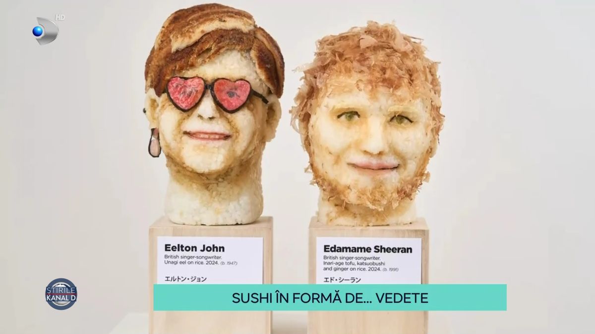 „Ed Sheeran din orez sau Elton John cu păr din creveți! O artistă a reușit să atragă privirile cu noile sale capodopere: portretele celebrităților din sushi”, a spus Cristina Dorobanțu.