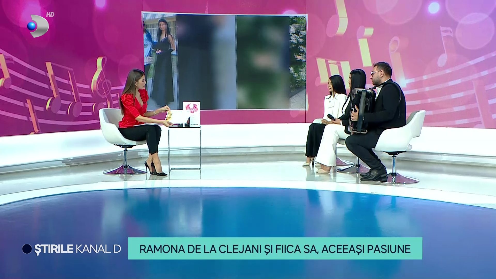 „În familia Ramonei de la Clejani, muzica este la rang de cinste de generații întregi. Talentul moștenit și dragostea pentru muzică au ajutat-o fă fie cântăreața de astăzi. Așa că am invitat-o în platoul știrilor, însoțită de una dintre cele mai dragi persoane din viața sa, fiica ei, Ana Maria”, a transmis Cristina Dorobanțu.