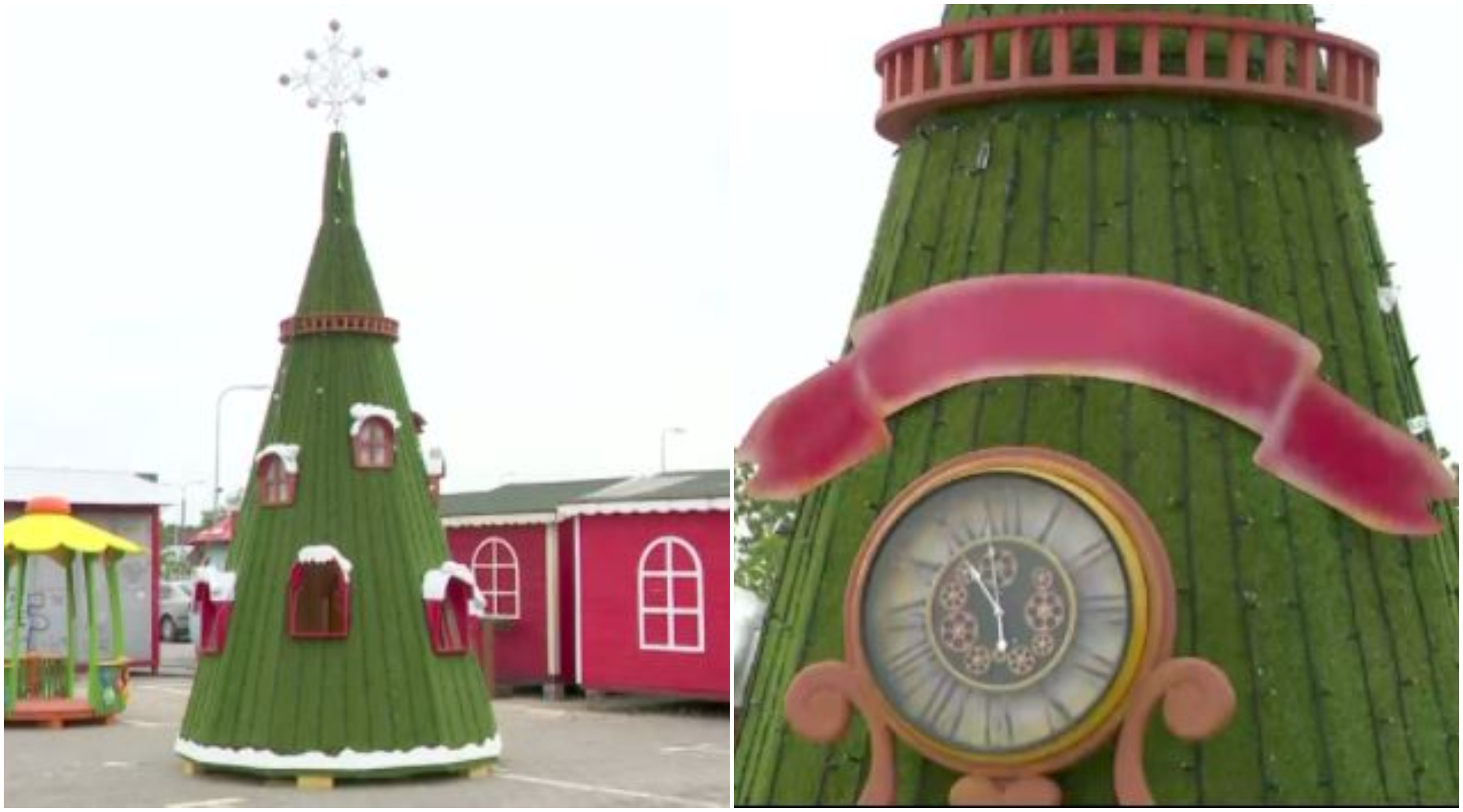 Căsuța în formă de brad a Moșului este construită de meșterii locali, are un ceas supradimensionat și va fi amplasată din iarnă în centrul orașului.