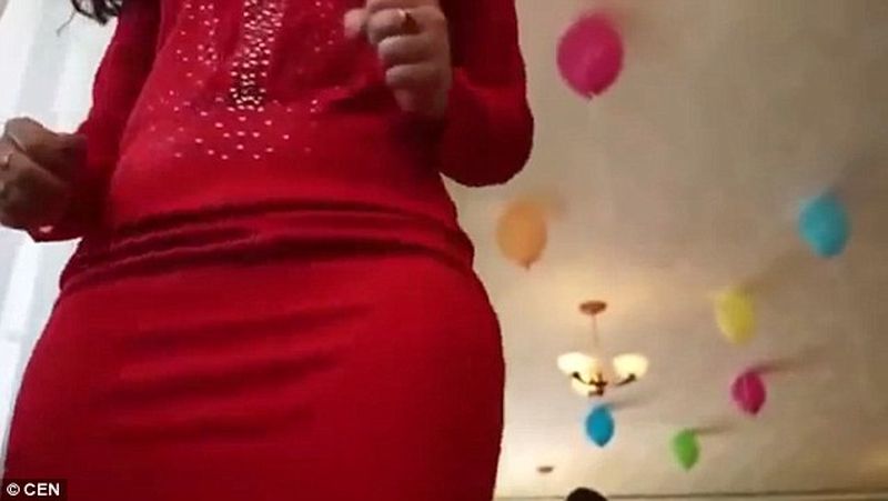 In loc sa isi fimeze fiica, barbatul a fost cucerit de miscarile de dans ale educatoarei, care purta o rochie rosie scurta.