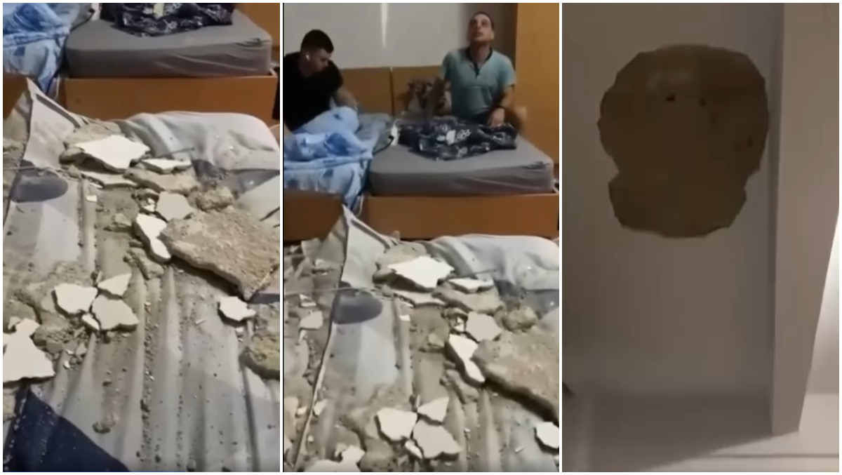 În imaginile postate de sindicat, se vede gaura uriașă din tavan și bucățile de moloz de pe podeaua camerei.
