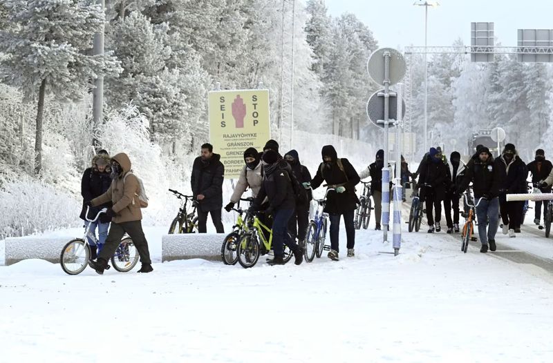 Ce caută migranții cu bicicletele la granița cu Finlanda